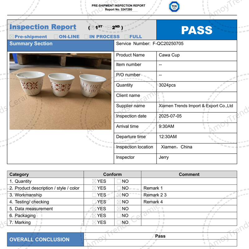 Our professional inspectors will randomly check products against order specifications through Our 14-stage inspection process to ensures your ceramic items meets International AQL 2.5/4.0 standards. With 50+ quality control checkpoints and third-party validation, your product is rigorously tested for reliability and safety before leaving our facility.